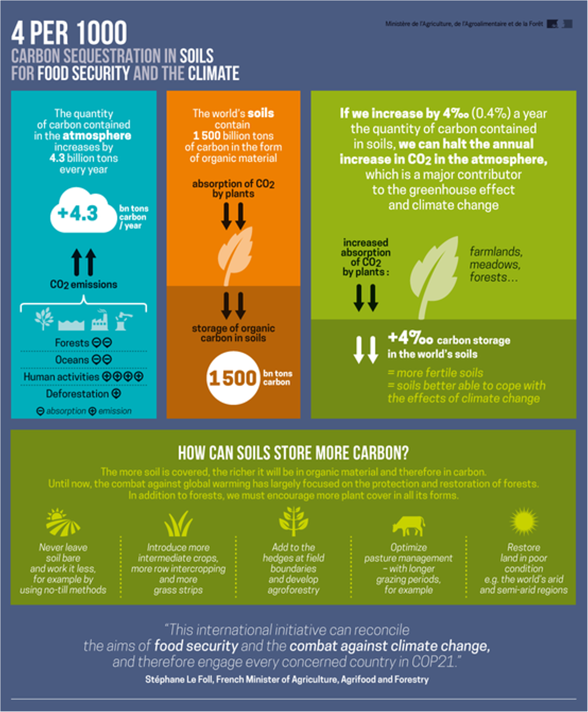 2015年國際千分之四倡議,台灣前農委會主委曹啟鴻也在台灣提出千分之四倡議:科學證據估計,若全球土壤表層(約 30-40 公分深)的碳儲量每年增加 0.4%(即千分之四),即可抵銷人類活動每年排放的二氧化碳總量。