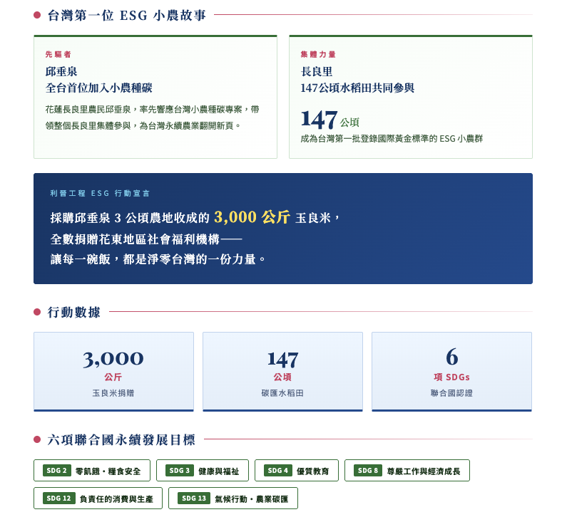 「種下一粒米,收穫一片永續的未來。」 利晉工程 × 邱垂泉 × 台灣小農種碳 x 黃金標準永續認證 共同為台灣的永續淨零,盡一份心力。